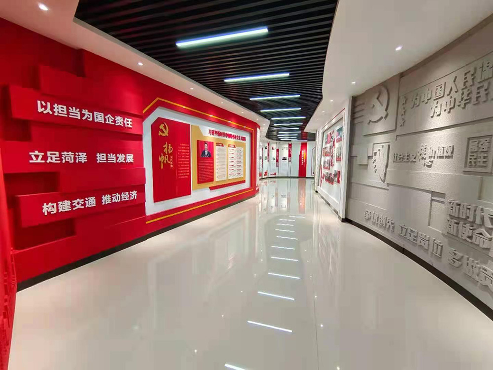 文化館整體以紅色為主色調(diào),結(jié)合圖文、櫥窗、燈箱、浮雕等方式,充分展現(xiàn)了黨的發(fā)展歷程、五代領(lǐng)導(dǎo)人風(fēng)采、紅色記憶、中國(guó)共產(chǎn)黨精神譜系、共和國(guó)勛章獲獎(jiǎng)?wù)?、一百句名言、集團(tuán)榮譽(yù)表彰、集團(tuán)黨員風(fēng)采等15個(gè)板塊內(nèi)容,著力打造集團(tuán)公司黨建文化宣傳陣地,營(yíng)造濃厚黨建氛圍。